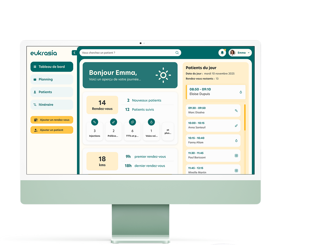 Eukrasia offre aux professionnels de santé une plateforme intuitive pour optimiser leur organisation, améliorer la communication et se concentrer sur l'essentiel : le bien-être des patients.
